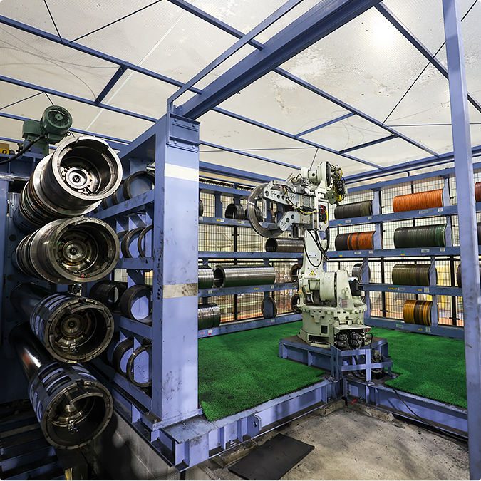 スリット幅30mm以上、外径2000mm未満の製品は専用の梱包設備を使用することで、安全に横バンド掛け作業を行っております。
