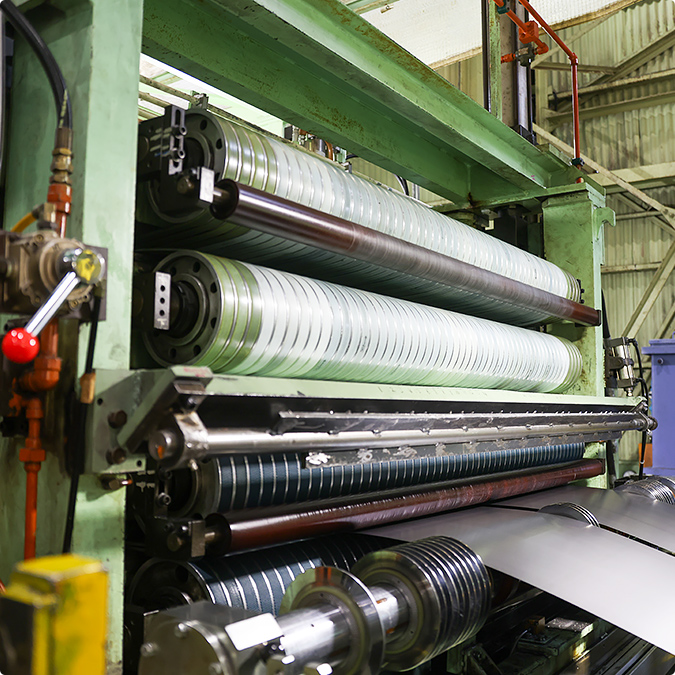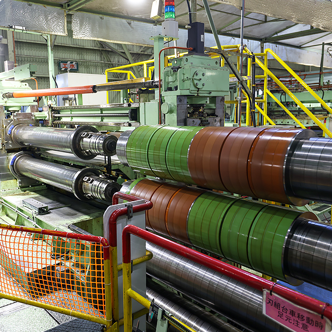 スリッターラインとは、ロール状に巻かれたコイルを巻きほぐし、指定された幅に縦方向へ連続的に切断、小幅のコイルとして、巻きなおす加工設備です。